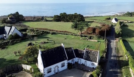 Plouhinec – Entre le spot de surf de Gwendrez et la plage de Mesperleuc, cette très belle maison en pierres des années 1960 bénéficie d’un emplacement rare, en hauteur, surplombant l’océan. Posée dans un écrin de verdure de 5000 m² (partiellement constructible), elle profite d’une vue mer spectaculaire, sans aucun vis-à-vis, et d’un environnement calme et apaisant. Un lieu idéal pour savourer la douceur de vivre en bord de mer.
