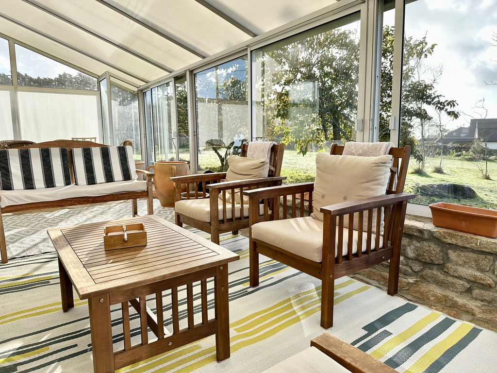 Derrière sa façade pleine de charme, la maison dévoile une atmosphère bretonne authentique, baignée de lumière et tournée vers l’extérieur. Une surface généreuse de 185 m² offrant une belle pièce de vie avec cheminée, ouverte sur une vaste véranda et une terrasse plein sud, invitant à la détente. On y trouve également un élégant bureau vitré profitant d’une vue panoramique sur l’océan, une cuisine aménagée, une buanderie fonctionnelle et un garage sécurisé.