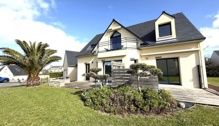 Plouhinec – Venez découvrir cette maison contemporaine construite en 2009 sur un terrain arboré de 1700 m² à seulement 300m de la Mer et du célèbre sentier côtier le GR34.