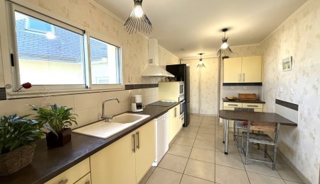 Située au calme dans un quartier très recherché de Plouhinec Proche du port de Poulgoazec et d’Audierne .Une allée bitumée nous permet l’accès sur la propriété avec un espace stationnement et garage. Dès l’entrée, la pièce de vie séduit par sa luminosité et ses volumes, avec un poêle à bois et à granulés apportant confort au quotidien. La baie vitrée permet un accès direct à la terrasse exposée plein sud et au jardin. Le rez-de-chaussée offre une vie de plain pied avec une chambre, une salle d’eau et un wc. La cuisine, aménagée et équipée, est complétée par un cellier et offre un accès direct au garage où se situe à l’étage un charmant atelier. À l’étage de la maison, trois chambres confortables, dont une avec balcon vue mer, s’articulent autour d’une salle de bains et de toilettes séparées.