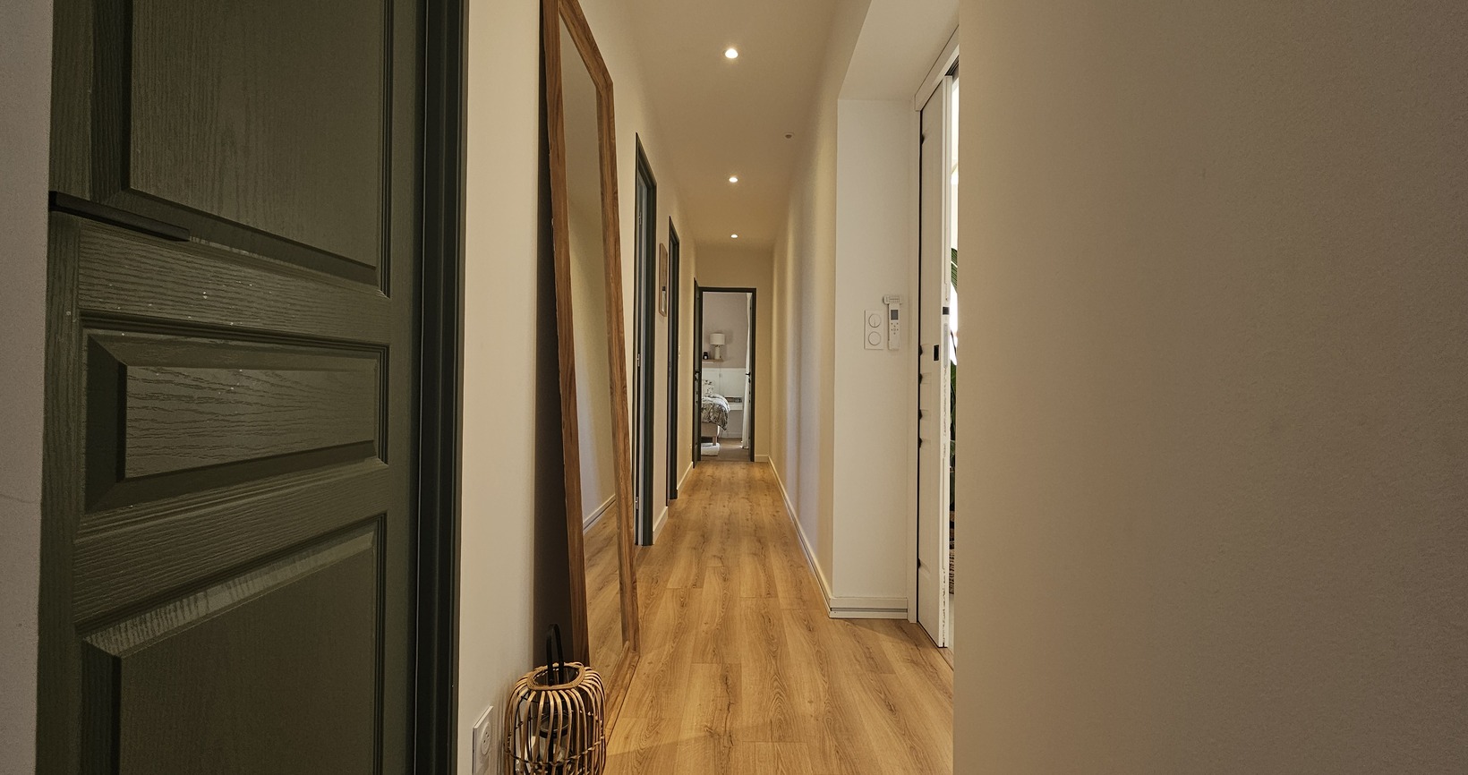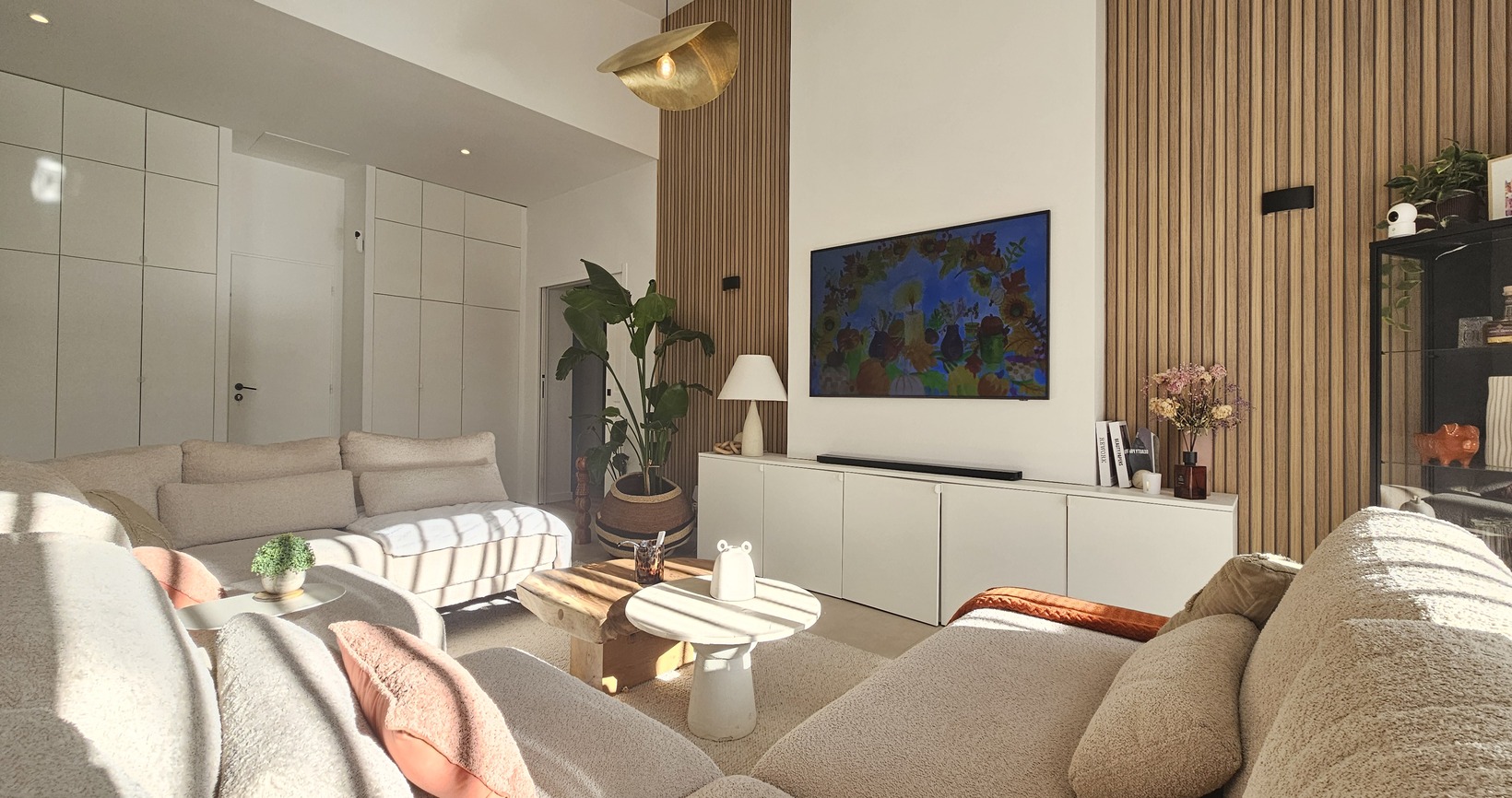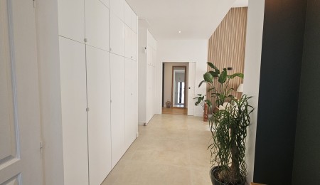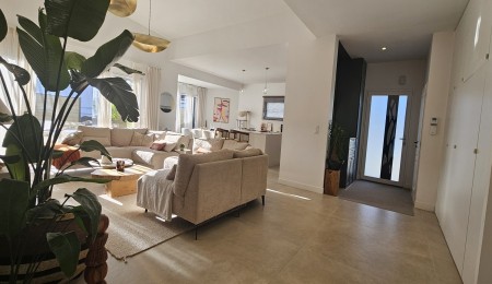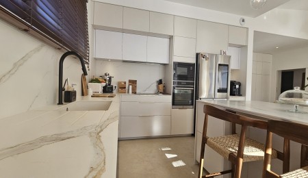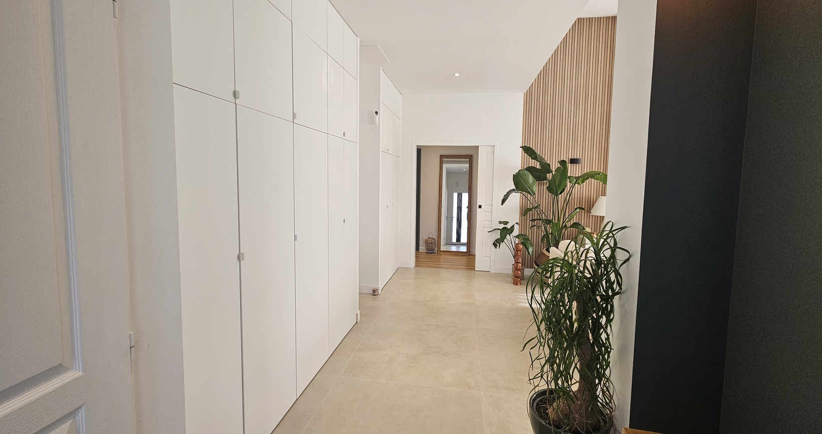 Dès l’entrée, généreusement équipée de rangements sur mesure, la visite révèle une maison pensée pour le confort du quotidien. La pièce de vie, sublimée par une Belle Hauteur sous Plafond, offre 67 m² d’ouverture et de fluidité. Le carrelage grand format 120×120 renforce l’élégance de l’ensemble, tandis que les larges ouvertures aluminium diffusent une lumière constante toute la journée. La cuisine haut de gamme, entièrement aménagée et équipée, s’intègre naturellement dans l’espace dinatoire, créant une ambiance conviviale et moderne.