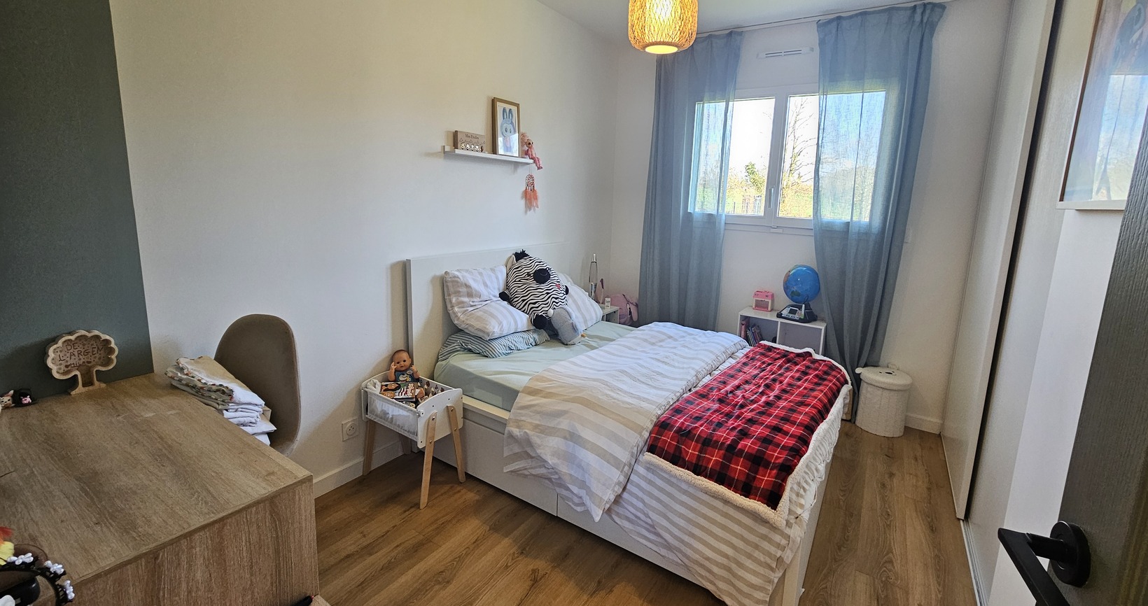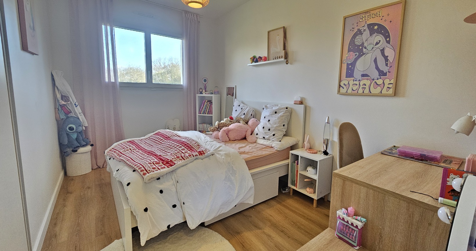 La partie nuit propose quatre chambres dont une suite parentale avec dressing et salle d’eau privative. Une seconde salle d’eau, équipée d’une douche et d’une baignoire, complète le confort familial. Une buanderie, ainsi que deux WC indépendants, optimisent l’organisation intérieure.