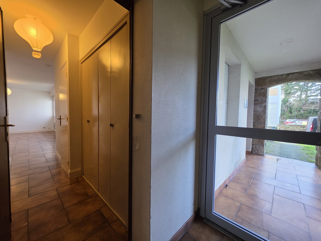 Sur la Commune de PONT L’ABBE, Plein Centre ville, Les commerces à pied, dans une résidence familiale, découvrez cet appartement situé au rez-de-chaussée offrant une distribution très fonctionnelle avec une entrée avec placard, WC avec lave main, un séjour avec cheminée et un coin cuisine aménagé, un cellier, une chambre avec sa salle de bain privative; Quelques rafraichissements sont à prévoir; Une place de parking privative complète les prestations. A investir sans attendre!