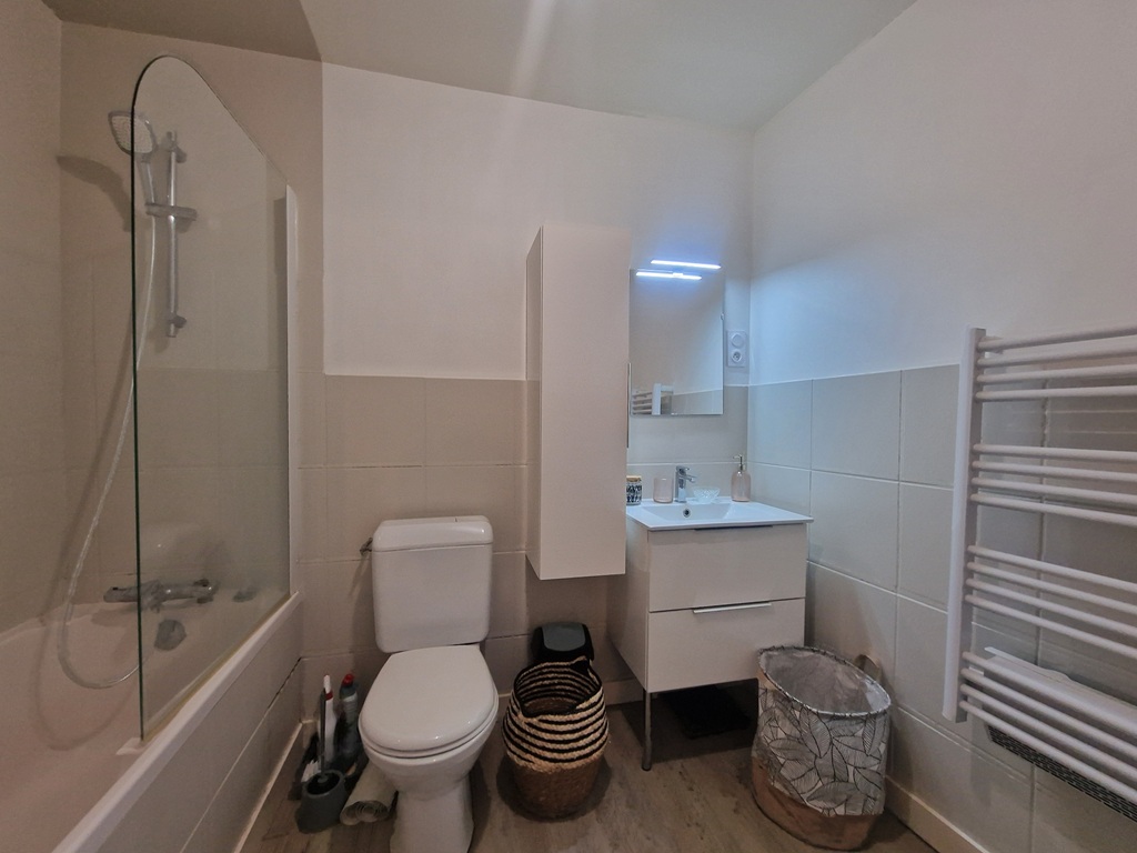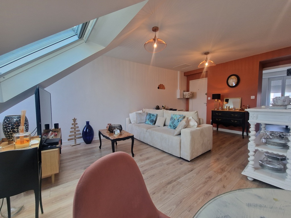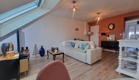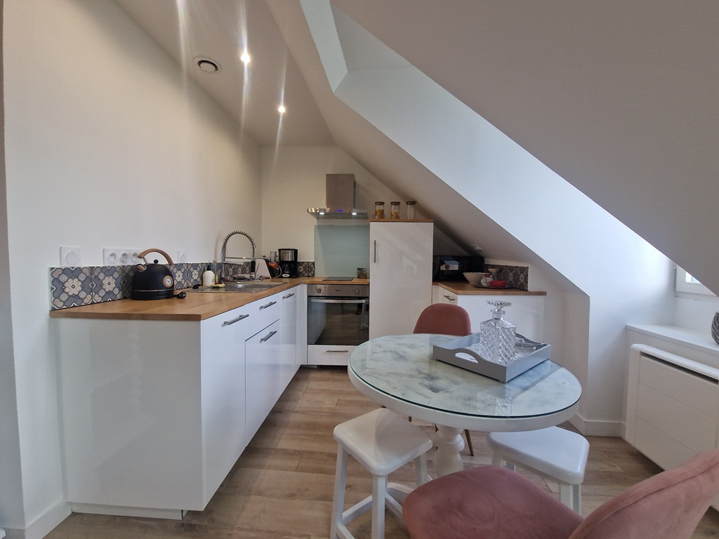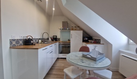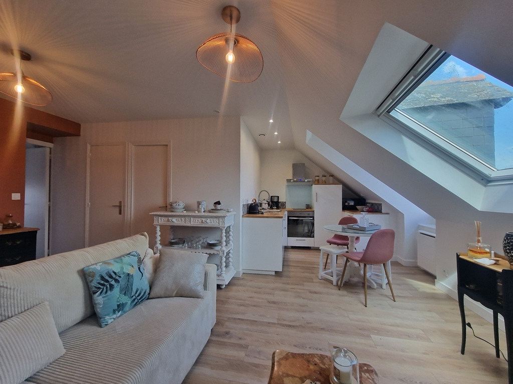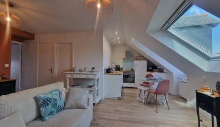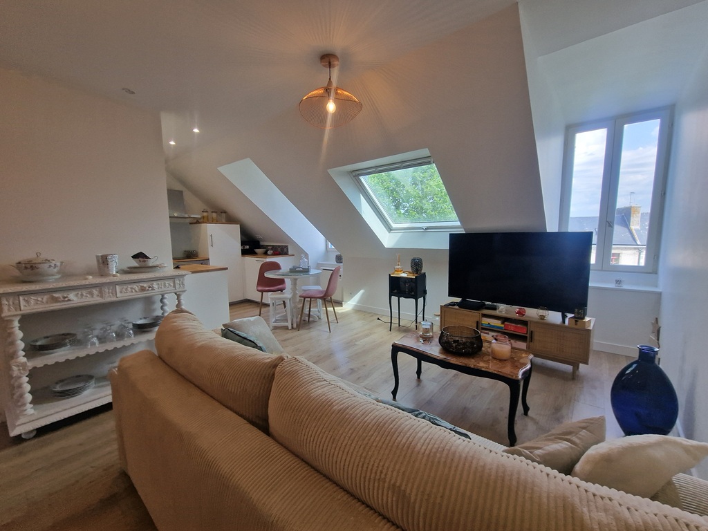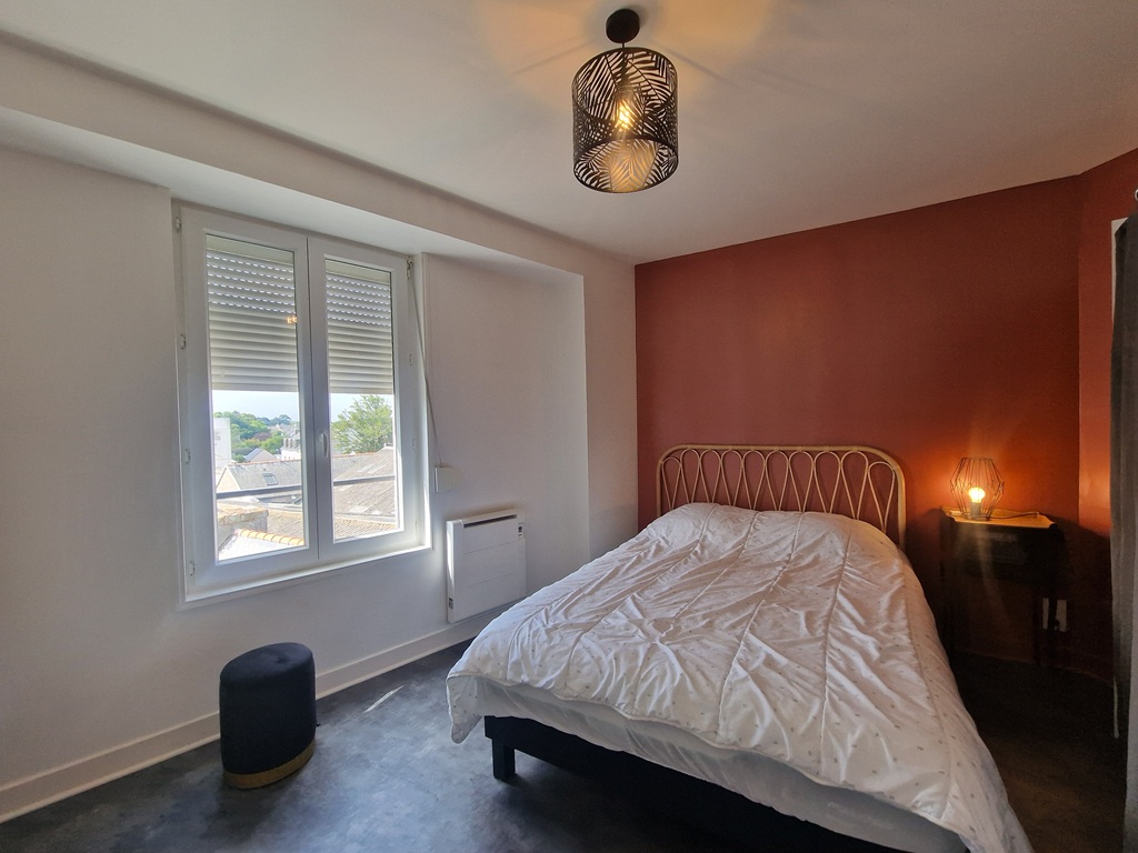 A LOUER! Libre, Sur la commune de PONT L’ABBE, au troisième et dernier étage d’une petite copropriété en plein Centre Historique, toutes les commodités à pied, investissez dans ce magnifique appartement de type 2 de 38 m² entièrement rénové en 2020 offrant un joli séjour très lumineux avec cuisine aménagée et équipée offrant une vue sur les arbres de la place Gambetta, une salle de bain-wc, une chambre côté cour exposée ouest.