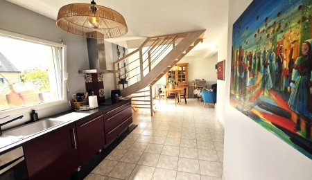 Située à 5 minutes de Quimper, sur la commune de Plomelin – Découvrez sans attendre cette impeccable maison contemporaine Idéalement située au cœur d’un charmant lotissement paisible et familial , à proximité immédiate des commerces, écoles et des réseaux de bus et à seulement 10 minutes de la ville dynamique de Pont l’abbé ( cinéma, piscine , lycées, hôpital …) et à seulement 5 minutes des plages ou de la ville de Quimper. La Maison entièrement repensée et rénovée avec soin en 2017, offre le confort et la fonctionnalité recherchés pour une vie agréable au quotidien. Le jardin clos et paysager d’une superficie de 430m², offre un bel espace de détente dès l’arrivée des beaux jours.