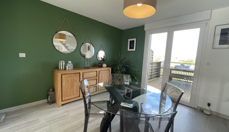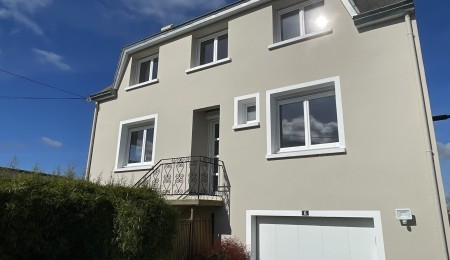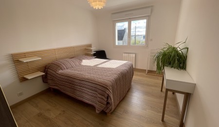 Quimper ( 12 mn ) , sur la commune dynamique de Edern, Rénovation de Standing et finitions irréprochables pour cette maison Traditionnelle non mitoyenne aux volumes confortables (140 m²), située en en impasse au calme et à 2 mn à pieds des commerces et des infrastructures médicales et scolaires. On est séduit dés l’entrée par une vaste et lumineuse pièce de vie de 50 m² comprenant un salon-séjour agrémenté d’un poêle à pellets donnant accès à sa terrasse et son jardin à la parfaite exposition avec vue dégagée sur la campagne environnante, une cuisine aménagée et équipée résolument moderne, un W.C.