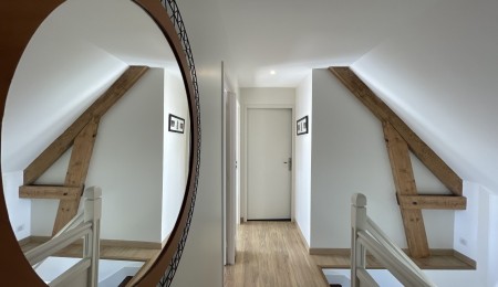 L’étage dessert 3 belles chambres sur parquet avec rangement , une salle de bain , une salle d’eau , un W.C . Un sous sol complet avec garage , buanderie , bureau vient parfaire de belles prestations .
