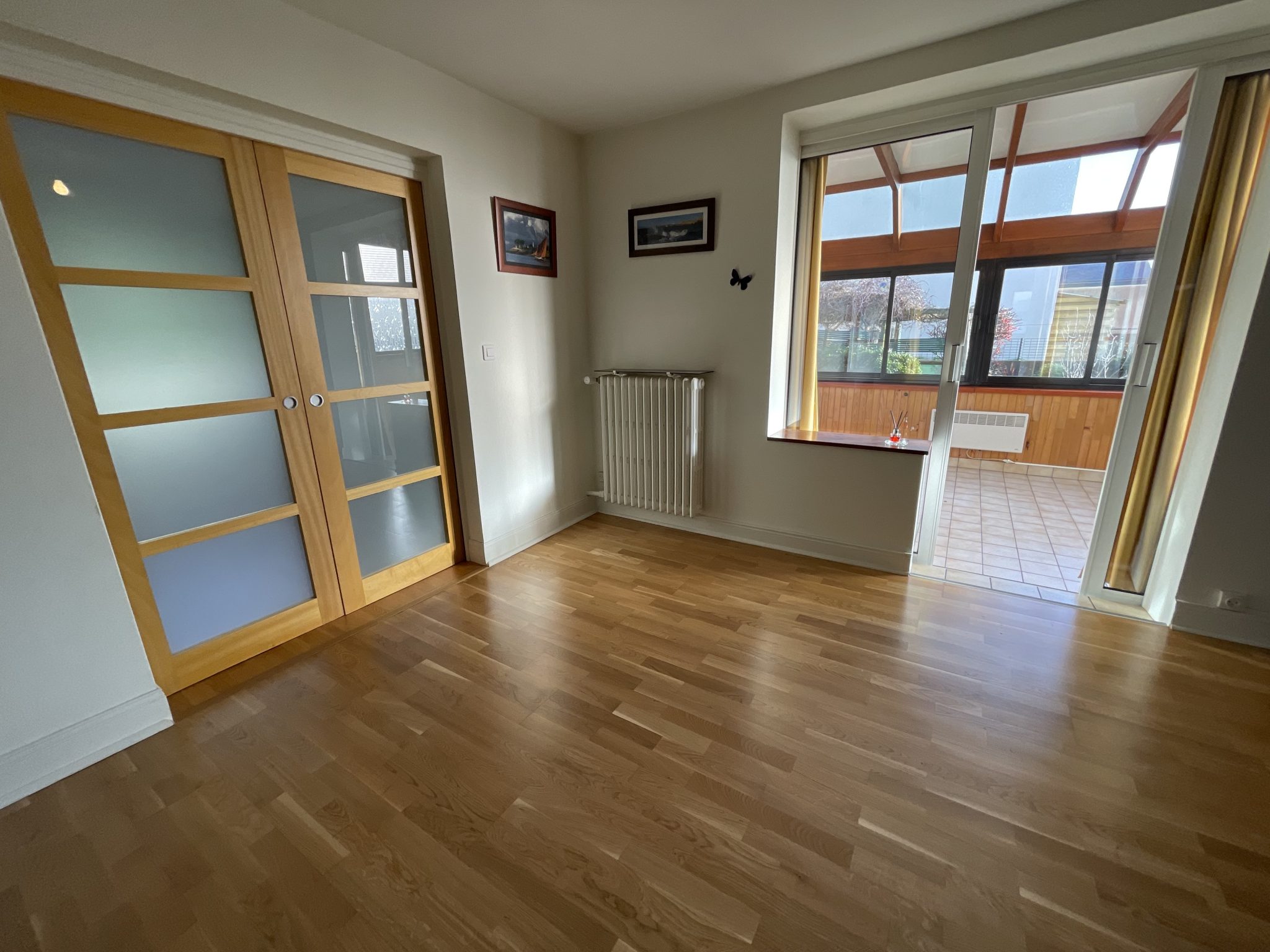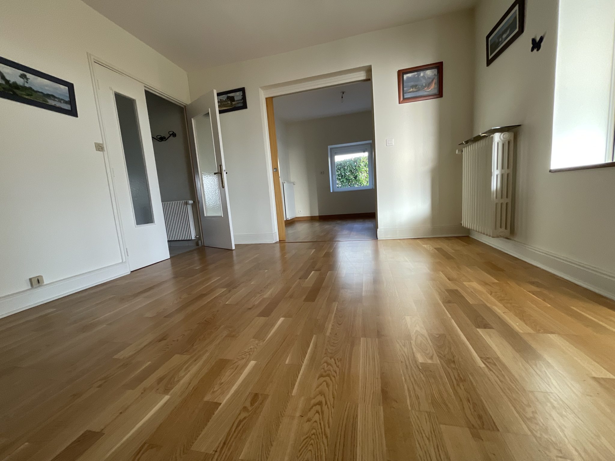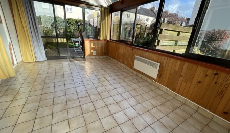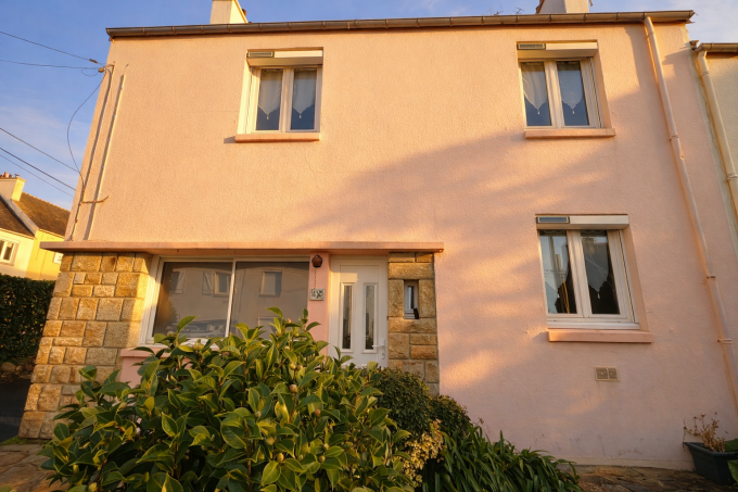 Quimper Kerfeunteun , quartier recherché pour cette coquette maison de ville à proximité des écoles et des commerces à pieds , bâtie en 1961 , elle offre une surface confortable de 112 m² . Le hall d’entrée nous amène sur un lumineux salon séjour avec sa cuisine ouverte , l’ensemble donnant accès à une vaste véranda et son jardin à la parfaite exposition . Véritable et indispensable vie de plain-pied avec sa chambre et sa salle d’eau , un W.C et une buanderie viennent parfaire les prestations du rdc. L’étage dessert 3 belles chambres chambres sur parquet avec rangement , une salle de bain avec W.C . Une maison de belle facture offrant une base saine et un entretien irréprochable , A VISITER RAPIDEMENT