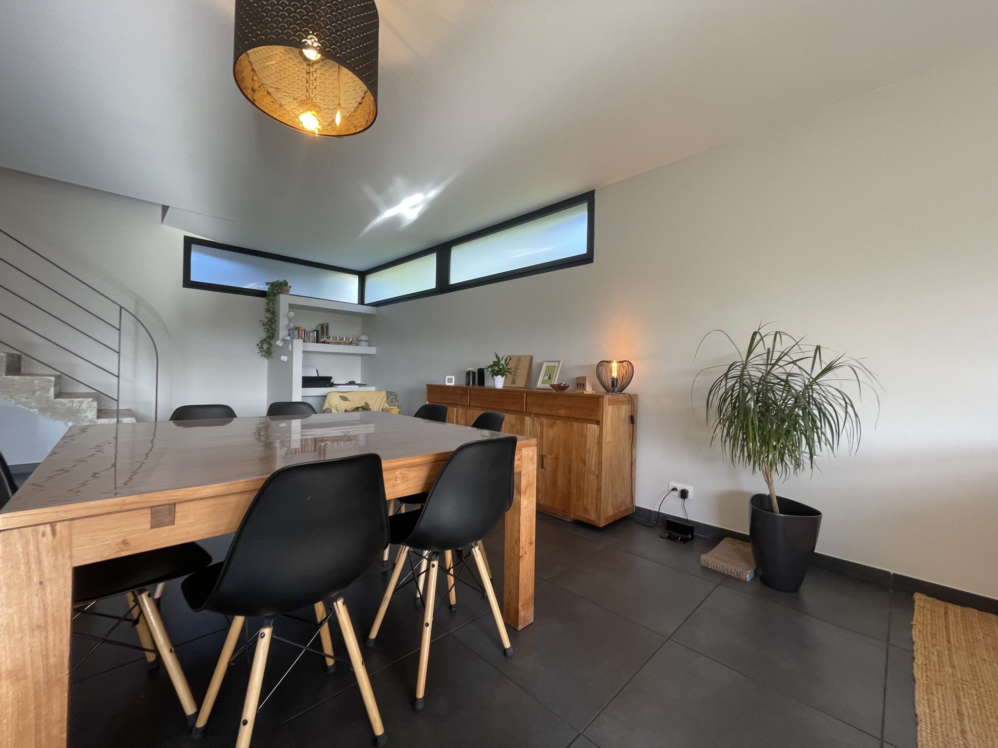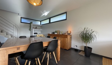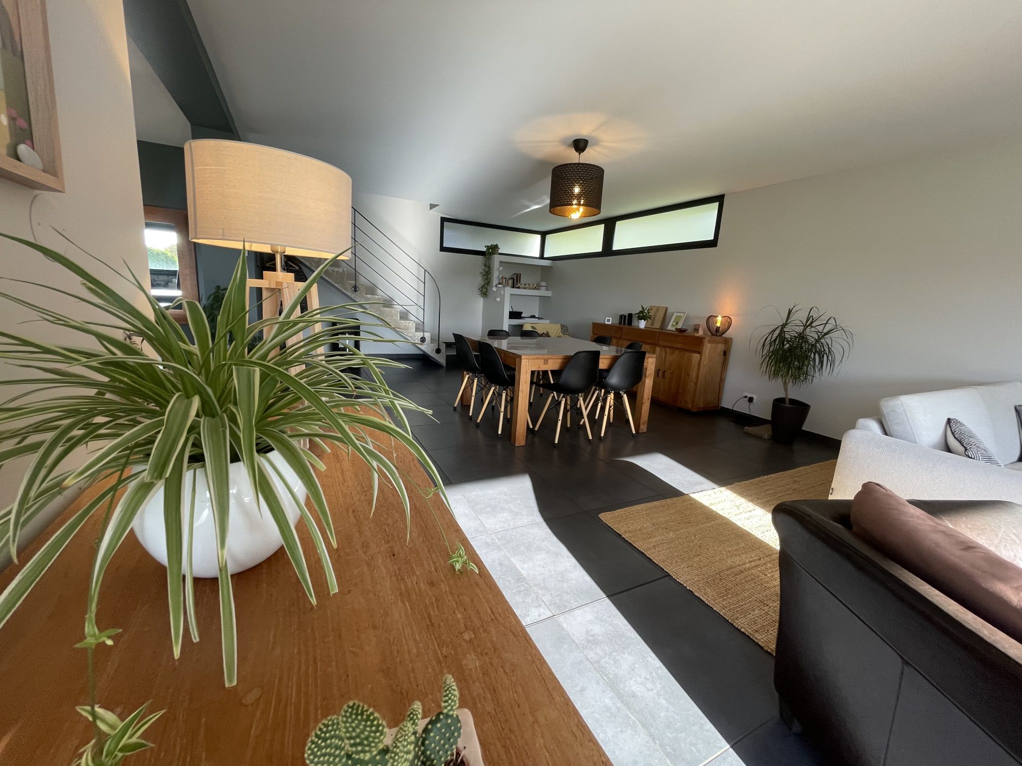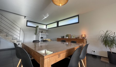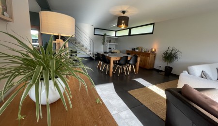 La particularité et la singularité des lieux offrent une pièce de vie en n-1 proposant un volume exceptionnel de 60 m² en open-space (salon séjour cuisine A/E) s’ouvrant par de larges baies vitrées sur sa terrasse et son jardin arboré à la parfaite exposition sans le moindre vis-à-vis. Un espace nuit parentale avec chambre, dressing, salle d’eau, cellier , une 5éme chambre en RDC vient parfaire des prestations XXL . Un Garage + parking. La visiter c’est l’adopter en oubliant les soucis d’une construction il ne vous reste plus qu’a poser vos valises… Coup de Coeur assuré.