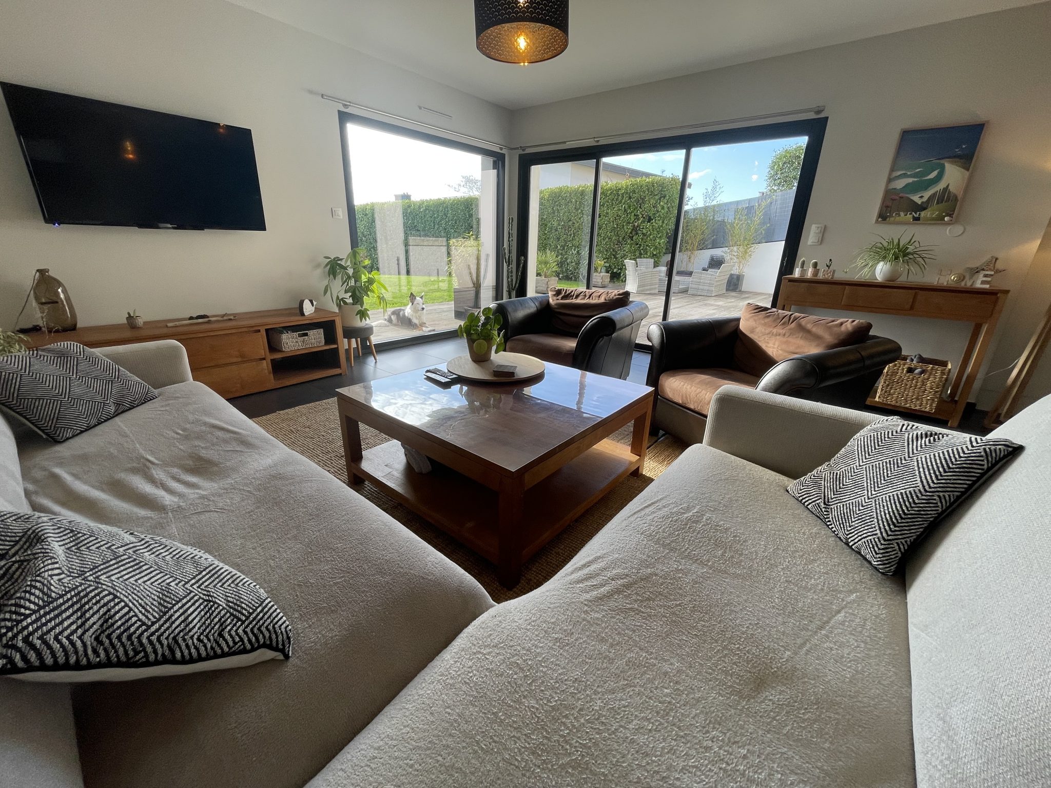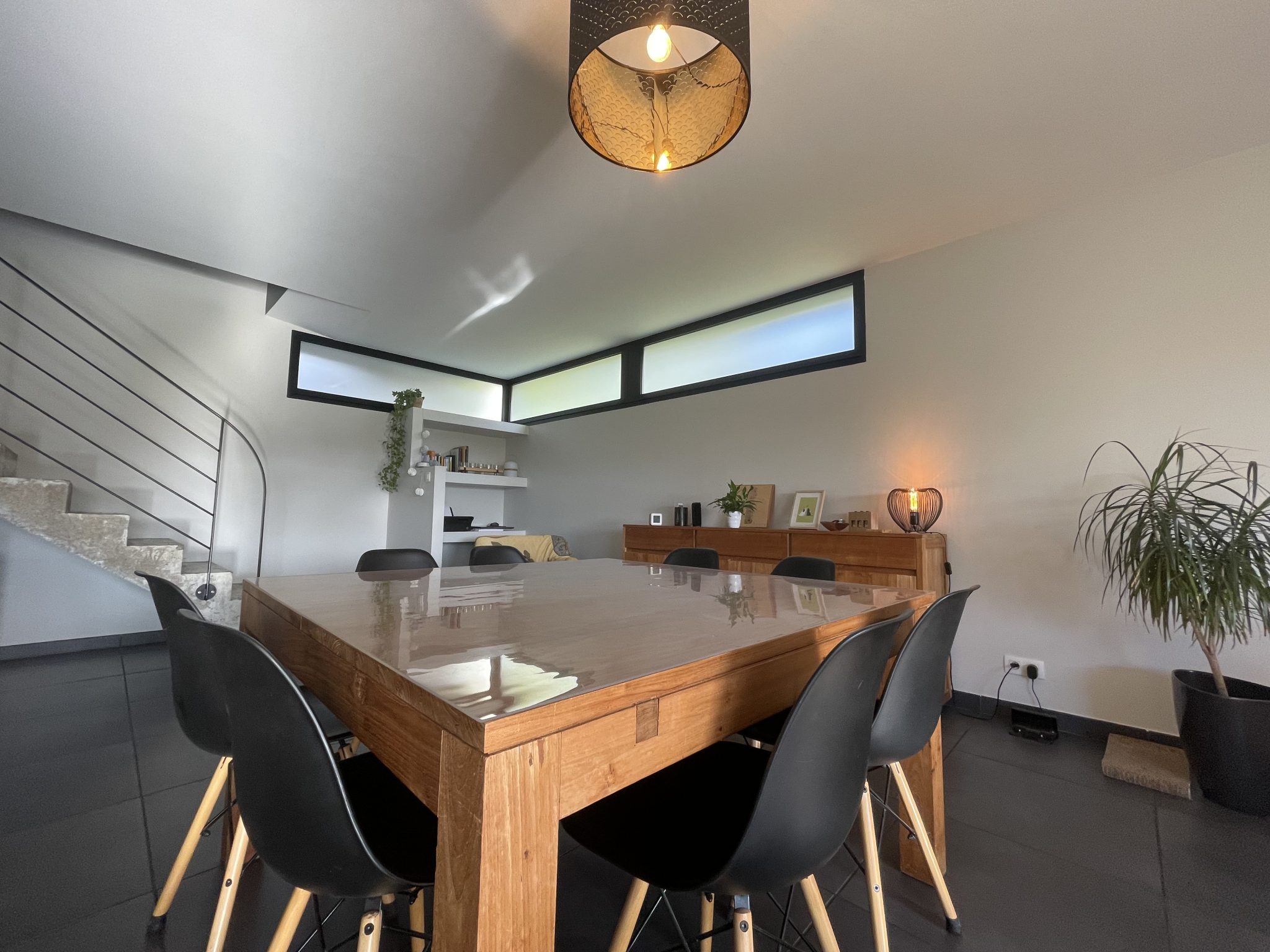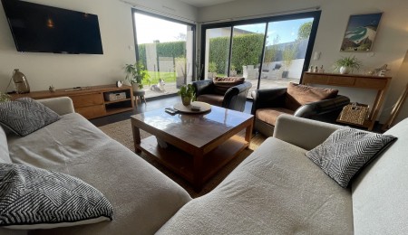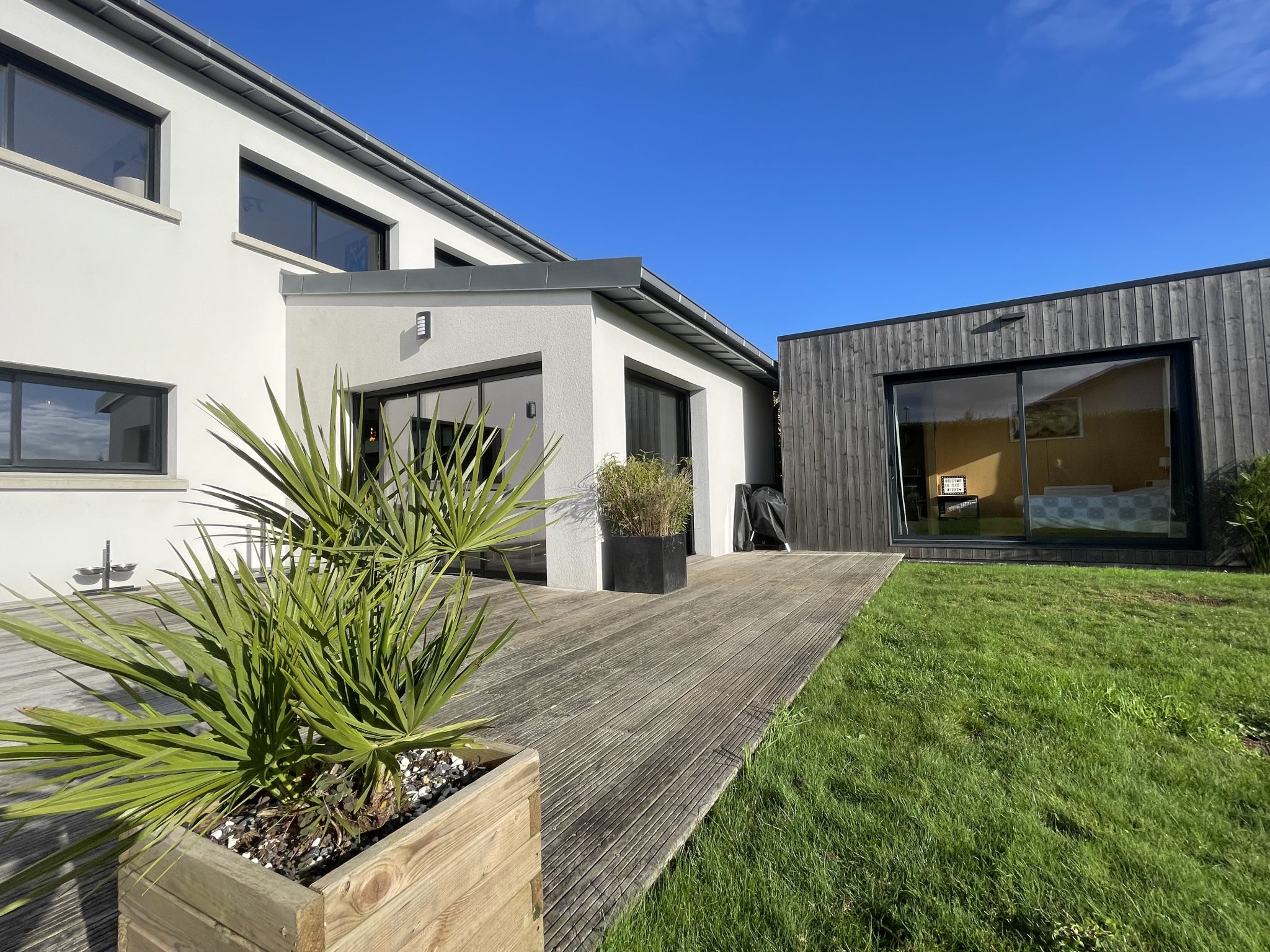 La particularité et la singularité des lieux offrent une pièce de vie en n-1 proposant un volume exceptionnel de 60 m² en open-space (salon séjour cuisine A/E) s’ouvrant par de larges baies vitrées sur sa terrasse et son jardin arboré à la parfaite exposition sans le moindre vis-à-vis. Un espace nuit parentale avec chambre, dressing, salle d’eau, cellier , une 5éme chambre en RDC vient parfaire des prestations XXL . Un Garage + parking. La visiter c’est l’adopter en oubliant les soucis d’une construction il ne vous reste plus qu’a poser vos valises… Coup de Coeur assuré.