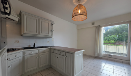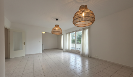 Quimper plein Centre-Ville, A 2 minutes des Quais, Située en rez de Chaussée surélevé, dans une Résidence recherchée et bien Entretenue équipée d’un Ascenseur et Offrant une Jolie Vue sur Les Jardins, Découvrez cet bel appartement (98m²) aux Volumes Généreux offrant une grande entrée desservant le beau salon séjour entièrement vitré sur le balcon filant et équipé d’une cuisine aménagée et équipée, une grande buanderie-lingerie, une salle de bain, un wc séparé, et deux Chambres avec placards; Une Place de Parking privative complète la Prestation de Ce bel appartement de Standing! Tout à Pied!