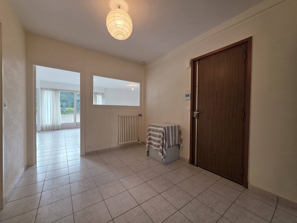 Quimper plein Centre-Ville, A 2 minutes des Quais, Située en rez de Chaussée surélevé, dans une Résidence recherchée et bien Entretenue équipée d’un Ascenseur et Offrant une Jolie Vue sur Les Jardins, Découvrez cet bel appartement (98m²) aux Volumes Généreux offrant une grande entrée desservant le beau salon séjour entièrement vitré sur le balcon filant et équipé d’une cuisine aménagée et équipée, une grande buanderie-lingerie, une salle de bain, un wc séparé, et deux Chambres avec placards; Une Place de Parking privative complète la Prestation de Ce bel appartement de Standing! Tout à Pied!