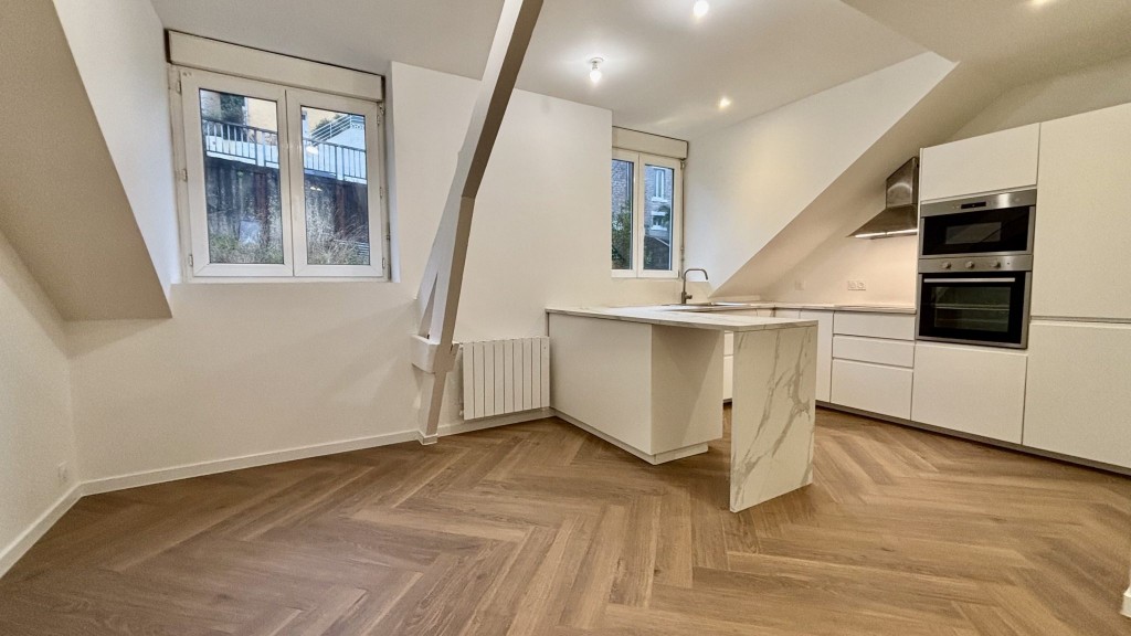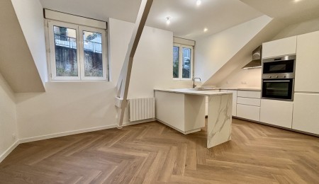 Quimper situé dans un emplacement privilégié, à 10 minutes à pied de la cathédrale et à 5 minutes de la gare récemment réhabilitée, découvrez ce bel appartement de type 3 de 45 m², entièrement rénové en 2026 avec des prestations de qualité. Il se trouve au dernier étage (sans ascenseur) d’une petite copropriété à faibles charges, cet appartement séduit par sa luminosité exceptionnelle et sa vue dégagée. Il se compose d’une agréable pièce de vie avec cuisine aménagée et équipée intégrée et deux chambres, une salle d’eau moderne avec WC. Vous apprécierez particulièrement son magnifique parquet chaleureux, qui apporte cachet et confort à l’ensemble.