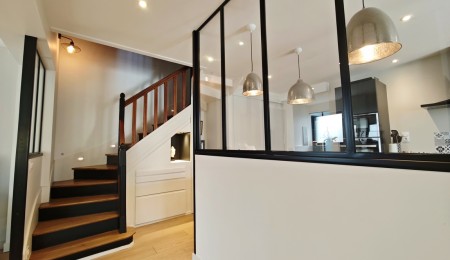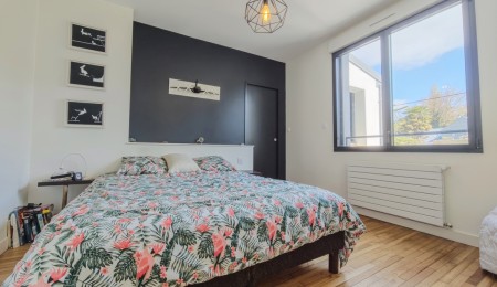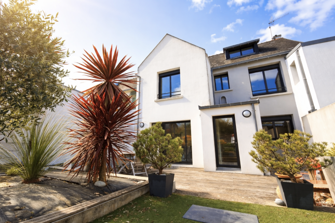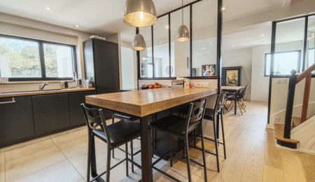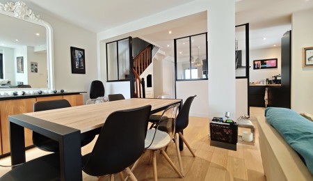 Uniquement dans notre agence. Située dans un quartier historique de Quimper, au calme d’une impasse à l’abri des regards. Maison des années 1950 bâtie sur un terrain de près de 180 m2 intégralement rénovée et étendue en 2017 par un architecte de renom pour une surface d’environ 150 m2, offrant un mélange subtil entre le charme de l’ancien et la fonctionnalité du contemporain. Une entrée dessert une pièce de vie lumineuse et fonctionnelle avec salon-séjour séparé par une verrière de la cuisine aménagée et équipée pour une surface d’ensemble d’environ 50 m2.