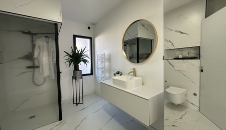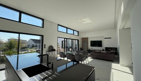 Dès l’entrée, le ton est donné, les volumes de 162 m² la lumière et les finitions séduisent instantanément. La pièce de vie s’articule autour d’un vaste séjour baigné de soleil, sublimé par une belle hauteur sous plafond et de larges ouvertures orientées Sud et Sud-Ouest. Les brise-soleils orientables assurent un confort lumineux optimal. L’espace s’harmonise naturellement autour d’une cuisine contemporaine ouverte, entièrement équipée et pensée pour la convivialité. En prolongement, une arrière-cuisine aménagée permet de préserver la clarté et l’élégance de l’ensemble tout en offrant un espace fonctionnel idéal.