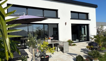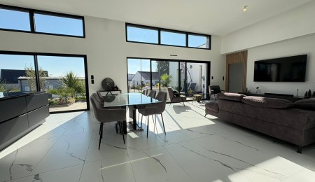 Quimper à quelques minutes du centre, contemporaine de plain-pied de 2024 vous invite à poser vos valises. Ici, tout a été pensé pour conjuguer modernité, confort et élégance au quotidien.