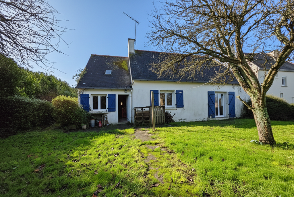 Sur la Commune de Saint Jean-Trolimon, dans un joli jardin clos et paysagé, découvrez cette Charmante maison de plain-pied aux volets bleus offrant entrée, séjour avec cheminée , cuisine aménagée et équipée, 2 chambres, 1 salle d’eau, 1 garage et le plus des combles aménageables desservis par un escalier. A seulement 10 minutes des plages de Tronoên, La Torche et à 5 minutes de PONT L’ABBE, C’est une opportunité à saisir rapidement.