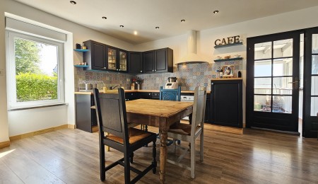 Dès l’entrée, vous découvrez les espaces généreux. Le rez-de-chaussée offre un vaste salon-séjour aux beaux volumes (environ 50m²), baigné de lumière naturelle. La cuisine ouverte s’intègre harmonieusement dans cet espace de vie. La véranda lumineuse crée une belle transition vers le jardin arboré et paysagé, invitation à la détente. Espace buanderie et cellier complètent ce niveau.