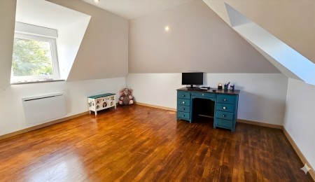Le premier étage dévoile son potentiel familial : un grand palier généreux, une salle de bain complète, et deux spacieuses chambres au charme affirmé, reposant sur un parquet chaleureux. Le dernier étage accueille une suite parentale XXL de plus de 40m² : avec salle d’eau privative, chambre généreuse, et dressing spacieux – un havre de tranquillité promis aux maîtres lieux. Une quatrième chambre complète cette harmonie résidentielle.