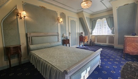 À l’étage, le palier sur parquet massif distribue l’espace nuit se composant de trois confortables chambres et une chambre supplémentaire en mezzanine. Toutes les chambres bénéficient d’une vue sur le parc et le ruisseau et sont mises en valeur par des matériaux de qualités, renforçant le caractère chaleureux de la maison. Une des chambres est accessible par un ascenseur reliant le rez-de-chaussée, offrant un confort supplémentaire. Une spacieuse salle de bains et un WC indépendant complète le niveau.